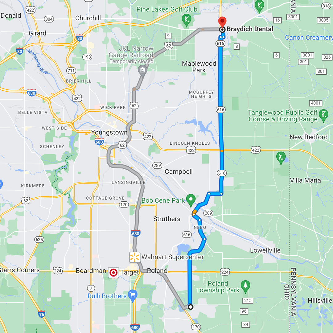 We serve our Poland patients from our dentist office in Hubbard, which is about a 20-minute drive from Poland Seminary High School. We accept new patients and have a flexible schedule that allows us to attend to your oral health needs when it matters most. While Poland has many accessible dental clinics, we are confident that once you get here, you’ll notice the difference with the first step into our friendly and welcoming reception room.